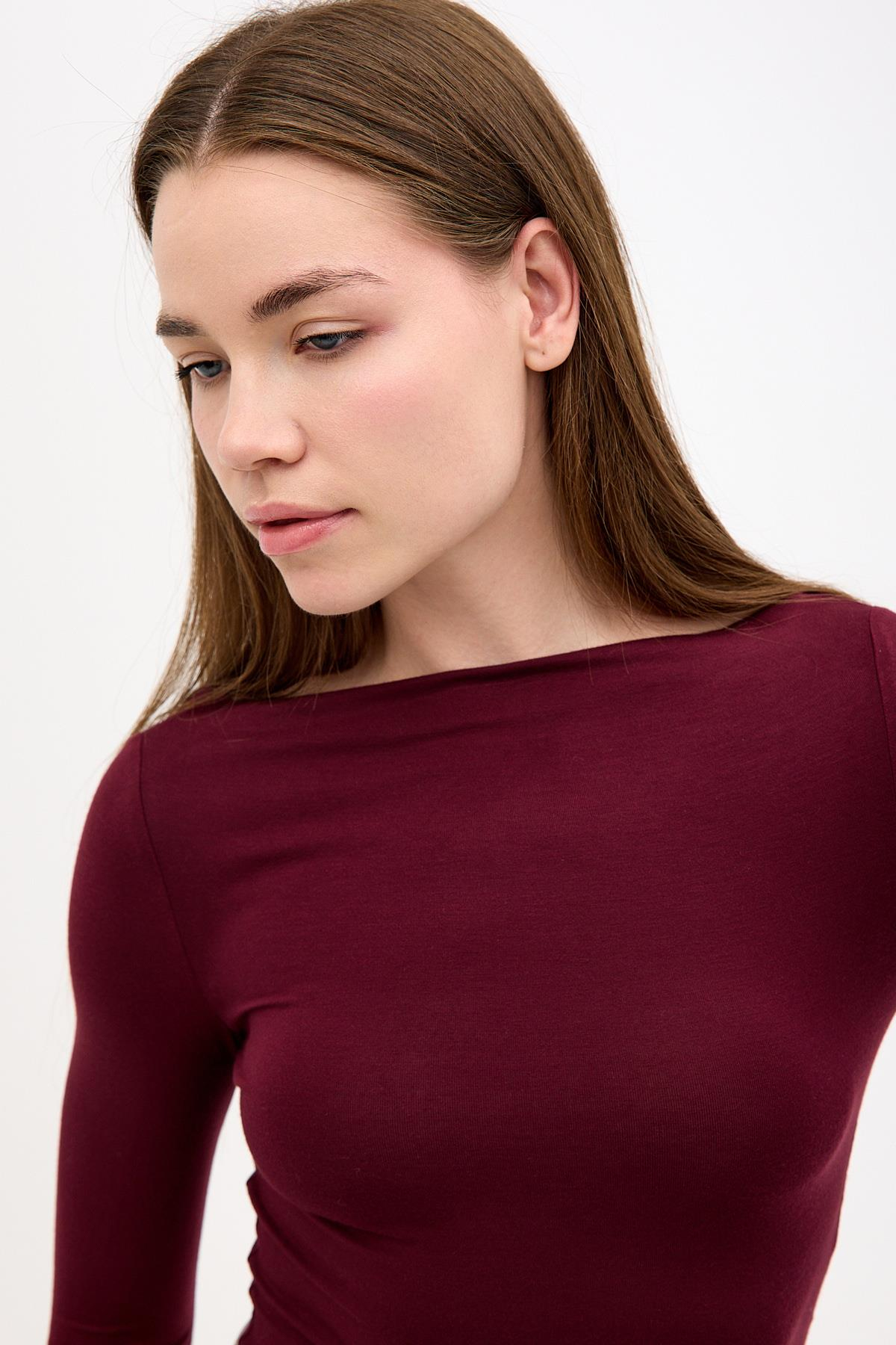 Degaje Kayık Yaka Yanı Büzgülü Pamuklu Bordo Bluz (BLZ1000039)